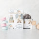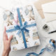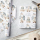 This design features a repeating pattern of classic Santa figures in a trendy muted blue and beige palette, offering a fresh take on traditional Christmas colors. The neutral background and sophisticated color scheme make this paper perfect for gifts under a modern, rustic, or pastel-themed Christmas tree. It’s ideal for those who love traditional holiday imagery but prefer a softer, more elegant aesthetic than the typical bright red and green. Design by Anna Szalacha © Happy Ann Designs.