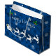 Blue Santa's Sleigh and Rentier Gift Bag Große Geschenktüte