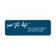 Das Blue Save the Date Rücksendelabel ist Teil einer größeren Hochzeitskollektion.