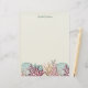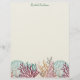 Line drawings of blue scallop shells and colorful corals on a light sandy background makes wonderful beach-themed stationery. Perfect for correspondence, invitations, flyers, and more.