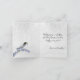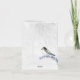 Eine fröhliche Weihnachtskarte mit einem Aquarell bemalten blauen Schwanzvogel auf einem blauen Ast gegen eine eisige Winterszene.