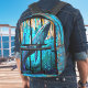 Mit Monogramm Blauer, Schwarzer und Weißer Orka Wal im Ozean in Imitate gestanztes Glas Design. Mit Monogramm mit Name Aquamarin Blue und Black Modern Beach Life Whale im Ocean Back Pack