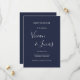Navy Blue Script Wedding Save the Date-Karte mit Signature-Stilnamen, diese elegante Navy Blue Save the Date-Karte kann mit Ihren besonderen Hochzeitstag-Informationen in schicken Buchstaben personalisiert werden.