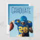 Der Absolvent in hochblauer Typografie über Ihr Senior Portrait Foto ist eine einfache Abschluss-Ankündigungskarte für einen Fußballspieler in einem Sportteam. Passen Sie Ihren Namen und die High School- oder Universitätsklasse des Jahres 2025 an und fügen Sie Ihre persönlichen Daten auf der Rückseite dieser minimalistischen Text-Overlay-Abschlusskarten hinzu. Personalisieren Sie mit einem zweiten Foto auf der Rückseite.