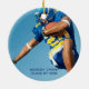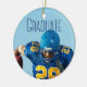 Der Absolvent in hochblauer Typografie über Ihr Senior Portrait Foto ist ein einfaches Abschluss Keepake Ornament für einen Fußballspieler in einem Sportteam. Anpassen mit Ihrem Namen und High School oder Uni-Klasse von 2023 und fügen Sie ein 2. Foto auf der Rückseite dieses minimalistischen Text Overlay Graduierte Weihnachtsgeschenk.