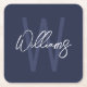 Blue Script Personalisiert Monogram und Name Rechteckiger Pappuntersetzer