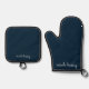 Blue Script | Stilvolle Monogram Modern Ofenhandschuh & Topflappen-Set