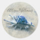 Blue Seashell Coastal Mit Monogramm Modernes Scrip Runder Aufkleber