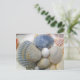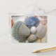 Blue seashells Fotografie Postkarten. Die Fotografie der tropischen Muscheln umfasst vier Muscheln Blau und Bräune, die in einem Kreis mit einer weißen Mondschnecke oder der Muschel des Haiauges in der Mitte angeordnet sind. Diese Muscheln kamen von der Küste der Florida Golf.