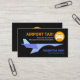Oben befindet sich ein überdimensionaler gelber Slogan mit dem Titel "Flughafentaxi", den Sie zu Ihrem Anzug wechseln können. Danach folgen die Kontaktdaten und ein gelbes Taxi-Logo, das Sie benutzen können. In der Nähe der Basis der Karte sind Ihr angesehener Name und Job Titel in blau.