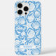 Customize this blue shell pattern iPhone 16 pro max case with your your name in a trendy modern CAP font in blue on white. It's so modern and beachy!
