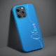 Blue Shimmer White Elegant Calligraphy Script Custom Personalisiert Name iPhone 14 Smart Phone Cases zeichnen sich durch ein modernes und trendiges, einfaches und stilvolles Design aus, mit Ihrem personalisierten Namen in eleganter handgeschriebener Schrift Typografie auf metallisch blau schimmerndem Hintergrund. Entworfen von ©Evco Studio www.zazzle.com/store/evcostudio