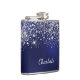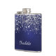 Blue silber Glitzer staubmonogram-Namensskript Flachmann