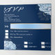Ein wunderschönes, luxuriöses und gläsernes Design mit einem hübschen blauen Kristall-Kugelkronen-Set vor einem dunkelblauen Hintergrund mit zarten Blume der blumigen Rose und silberfarbenen Eckkanten. Das untere Drittel verfügt über eine Antwortkarte mit personalisierter uAwg-Adresse und Menüoptionen, die Ihre Gäste abschließen können. Diese sind ideal für eine Quinceanera, Brautparty, einen Geburtstag eines Jahrtausends oder eine besondere Feier für die Frau. Personalisieren Sie die Formulierung, die Hintergrundfarbe und fügen Sie Ihr eigenes Foto, um es einzigartig zu machen.