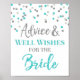 Ratschläge und gute Wünsche für das Brautschild für Brautparty in hellblau und silber Konfetti Muster. Bitte beachten Sie, dass Glitzer-Effekt nur fotografische Wirkung ist.