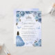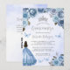 Diese schöne Quinceañera Einladung zeigt eine Grenze von blauen Rose mit silbernen Imitaten Glitzer Blattwerk auf einem blauen Aquarell. Ein silberner Tiara, ein dunkelhaariges Mädchen in einem blauen Prinzessenkleid und kleine blaue Schmetterlinge schmücken den Text. Das Wort "Quinceañera" und der Name des Ehrengast erscheinen in elegantem silbergrauem Schriftzeichen, der Rest in grau sans serif Schriftart. Fügen Sie auf der Rückseite zusätzlich einen QR-Code hinzu, um Ihren Gästen zu helfen, Ihre quinceañera Website und UAWG online zu besuchen.