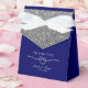 Mit dieser personalisierten Gastgeschenk Hochzeit-Box, die mit einem modernen Glitzer silber und königsblau gestaltet ist, verleihen Sie Ihrem Fest eine Touch Wintereleganz. Die elegante Box mit ihrem romantischen Seilherz und ihrer eleganten Schrift eignet sich hervorragend für Winterhochzeiten und saisonale Veranstaltungen. Ein stilvoller Weg, um Ihren Gästen zu danken und einen bleibenden Eindruck von Ihrem besonderen Tag verlassen.