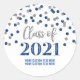 Blue Silver Glitzer Confetti Abschluss 2021 Runder Aufkleber