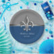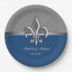 Persönlich gestalten Sie Ihre New Orleans Verlobung, Hochzeit oder Jubiläumsveranstaltung mit diesen Tellern, die in einem silbernen Lilie-Symbol im Metalstil in tiefblau und grau gehalten sind.