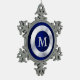 Dieses unverwechselbare Schneeflocke-Ornament zeigt Ihr Monogramm in silbergrau in der Mitte, umgeben von einem hübschen Imitat silbernen Rundrahmen. Der Rahmen und das Monogramm werden auf einem tiefen royal blauen Farbverlauf hinterlegt. Elegant! **Bitte beachten Sie - das Bild wird auf der Oberfläche gedruckt und ist nicht aus Silber oder einem anderen metallischen Stoff hergestellt.**