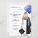 Sie glaubte, sie könnte es. Also lud sie Abschluss ein. Features Dame Absolvent mit blauen und silbernen Glitzer Ballons, Graduierungsmütze und Kleid.