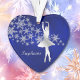 Dieses hübsche Holiday-Ornament wird für den Tänzer in deinem Leben ein wunderbares Sake-Geschenk machen! Es verfügt über eine silberne Ballerina vor einem Spray von verzierten Silberschneeflocken. Das Bild wird auf einem Gradienten tiefblauen Hintergrund platziert. Ihr Text ist in passendem Silber an der Seite. Die Rückseite des Ornaments hat den gleichen blauen Hintergrund und Schneeflocken, und ein weiteres Textfeld für Sie anpassen. Schön!