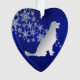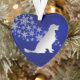 Dieser hübsche Weihnachtsschmuck wird für jeden, der einen Goldenen Retriever Liebe, ein wundervolles Keksgeschenk machen! Es zeigt eine silberne Silhouette Golden Retriever Image vor einem Spray von verzierten silbernen Schneeflocken. Das Bild wird auf einem Gradienten tiefblauen Hintergrund platziert. Die Rückseite des Ornaments hat den gleichen blauen Hintergrund und Schneeflocken, und ein Textfeld für Sie anpassen.