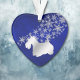Dieses hübsche Holiday-Ornament wird für jeden, der einen schottischen Terrier Liebe, ein wundervolles Geschenk machen! Es zeigt eine silberne Silhouette Scottie Hundebild vor einem Spray von verzierten Silberschneeflocken. Das Bild wird auf einem Gradienten tiefblauen Hintergrund platziert. Die Rückseite des Ornaments hat den gleichen blauen Hintergrund und Schneeflocken, und ein Textfeld für Sie anpassen. Schön!