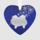Dieses hübsche Holiday-Ornament wird für jeden, der einen Spitz Liebe, ein wundervolles Geschenk machen. Es ist mit einem silbernen Spitz-Bild in der Silhouette vor einem Spray aus verzierten Silberschneeflocken ausgestattet. Das Bild wird auf einem Gradienten tiefblauen Hintergrund platziert. Die Rückseite des Ornaments hat den gleichen blauen Hintergrund und Schneeflocken, und ein Textfeld für Sie anpassen. Schön!