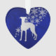 Dieses hübsche Holiday-Ornament wird für jeden, der ein Whippet Liebe, ein wunderbares Sake-Geschenk machen. Es ist mit einem silbernen Silhouette Whippet Hund-Bild vor einem Spray von verzierten Silberschneeflocken ausgestattet. Das Bild wird auf einem Gradienten tiefblauen Hintergrund platziert. Die Rückseite des Ornaments hat den gleichen blauen Hintergrund und Schneeflocken, und ein Textfeld für Sie anpassen. Schön!