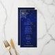 Das ist ein stilvolles, elegantes Hochzeitsmenü mit silberfarbenem Text auf elegantem, königsblauen Farbverlauf. Ein hübsches Sternbild im Schneeflockenstil schmückt die Decke, verstreute entfernte Sterne sorgen für Funkeln. Die Rückseite der Karte ist dieselbe königsblaue Farbe. Diese Karte passt zu den "Blue Silver Star Snowflake Wedding Invitations" in meinem Geschäft, ist aber für jede Winterveranstaltung oder Abendessen geeignet.