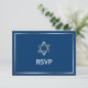Eine klassische Bar Mitzvah RSVP Karte mit einem Star of David Design in Silber und Dunkelblau. Designs sind flache gedruckte Illustrationen/Grafiken - NICHT AKTUELLE SILVER FOIL.