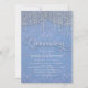 Quinceañera 15. Geburtstagsfeier Einladung für Mädchen mit schönen, eleganten silbernen Saitenleuchten und Damast auf blau.