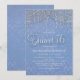 Sweet 16 Geburtstagsfeier Einladung für Mädchen mit schönen, eleganten silbernen Saitenleuchten und Damast auf blau.