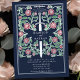 Set the tone for your medieval fantasy wedding with a bold invitation design—a grand sword surrounded by florals against a blue background. Perfect for couples dreaming of an epic, romantic celebration. Personalize it for your needs. NOTE: The silver featured in this design is NOT real foil.