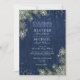 Erschaffen Sie mit diesem rustikalen Winterwunderland-Design die perfekte Hochzeitseinladung. Mit marineblau-blauem Holz, silbernen Schneeflocken aus Glitzer, die auf die Tannenwälder fallen, mit handgeschriebenen Schriftzeichen und funkelnd Saitenlichtern, weist die Rückseite der Karte eine bräune und marinebrilles Büffel karierte Textur auf. Copyright Elegant Invites, alle Rechte vorbehalten.