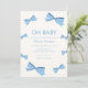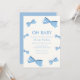 Babydusche, modernes Babyduschthema, Babydusche, Babydusche-Einladung, mit niedlichem, blauem Bogen-Rahmen und Typografie "Oh Baby" in beige Hintergrundfarbe entworfen. Passende Artikel in unserem Shop Urban Aglow Design.