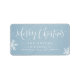 Personalisierte Weihnachts-Rücksendeadressen-Aufkleber mit weißem handgeschriebenem Kalligrafieschrift "Frohe Weihnachten" und Schneeflocken auf winterblau strukturiertem Hintergrund, einfach, modern und elegant.