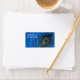 Phantastische Stillleben Fotografie von Pfauenfedern. Der dunkelblaue Hintergrund hebt die lebhaften Farben des Pfaus hervor. Diese lustigen Adressetiketten wären bei den passenden Einladungen großartig.