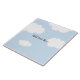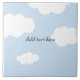 Blauer Himmel mit flauschigen weißen Wolken. Dies ist eine Vorlage, die Sie mit Ihrem eigenen Namen oder anderen Texten anpassen können.