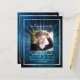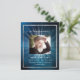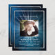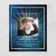Ein elegantes zweiseitiges Programm. Ein dunkelblauer Himmel als Hintergrund, ein silber aussehendes Imitat und Platz für ein Foto. Lichtstrahlen hinter dem Foto. Personalisieren und hinzufügen von Namen, Daten und Text.