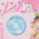Weiße Wolken am blauen Himmel. Teller für kundenspezifisches Papier. Party-Dekor.