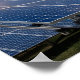 Blue Sky und Solarzellen: Innovative saubere Technologie für erneuerbare Energien. Ein lebendiges Bild, das das Set von Solarzellen gegen einen klaren blauen Himmel zeigt.