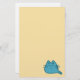 ein niedlicher Cartoon, der von einer blauen, lächelnden Kätzin auf einem cremefarbenen Hintergrund zeichne.