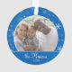 Blue Snowflake Pattern Familie Foto Weihnachten Keepake Ornament. Individuell entworfene Weihnachtsschmuck mit modernem Blau-Weiß-Schneeflockenmuster. Fügen Sie Ihr Foto, Ihren Namen und das Jahr hinzu. Süße Sake-Ornament oder einzigartiges Geschenk. Schaffen Sie sich einen eigenen Weihnachtsschmuck für Ihre Familie.