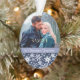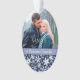 Dieses Urlaubssake-Ornament verfügt über ein eigenes Foto mit einer unteren Grenze von weißen Schneeflocken auf dunkelblauem Hintergrund. Ein hellblau-graues Banner hält Ihren personalisierten Text in Weiß. Die Rückseite des Ornaments hat die gleiche Foto- und Schneeflocke-Grenze, mit einem zweiten Textfeld, das Sie anpassen können. Das macht ein schönes Sake-Geschenk für frisch vermählte oder ein Paar. *Tipp zum Platzieren Ihres Fotos — nach dem Hochladen verwenden Sie "Anpassen" und die Pfeiltasten, um es für das beste Aussehen zu verschieben.*