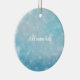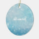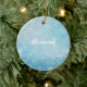 Featuring a soft blue bokeh background with delicate white snowflakes, this ceramic keepsake is perfect for adding a name and making it uniquely yours.