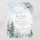Celebrate the bride-to-be with this enchanting Snow in Love Winter Bridal Shower Invitation, featuring soft watercolor snowflakes, frosted pine trees, and elegant winter blue lettering.