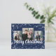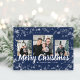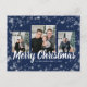 Blue Snowflake Frohe Weihnachtspostkarte. Mit dieser marineblauen, blauen und weißen Schneeflocke-Postkarte, die drei Ihrer beliebtesten Fotos vorn und eines noch eins auf der Rückseite besticht, erleben Sie die Saison. Das zarte Schneeflockendesign und der elegante weiße Text vor dem Hintergrund der tiefen Marine schaffen einen atemberaubenden Kontrast, der die Wärme Ihrer gepflegten Erinnerungen unterstreicht. Diese Postkarte ist ein perfekter Weg, um Liebenden herzliche Grüße in der Nähe und weit zu schicken und gleichzeitig eine Touch saisonalen Charmes in jeden Briefkasten zu fügen. Erleben Sie diesen Urlaub mit dieser wunderschön gestalteten Postkarte, die den Zauber des Winters widerspiegelt.