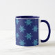This pretty mug features my original artwork of vintage illustrated snowflakes in blue. It has a blue color inside it and on the handle. These are 11-ounce mugs, just the perfect size for your home brewed coffee or tea - or even hot chocolate! It would make a great gift, and you can put packets of coffee, tea bags or hot chocolate inside. One other gift idea is putting a little plant in it to make it extra special for your loved one. A fun gift for a winter lover, skier or a Christmas Holiday gift for anyone.